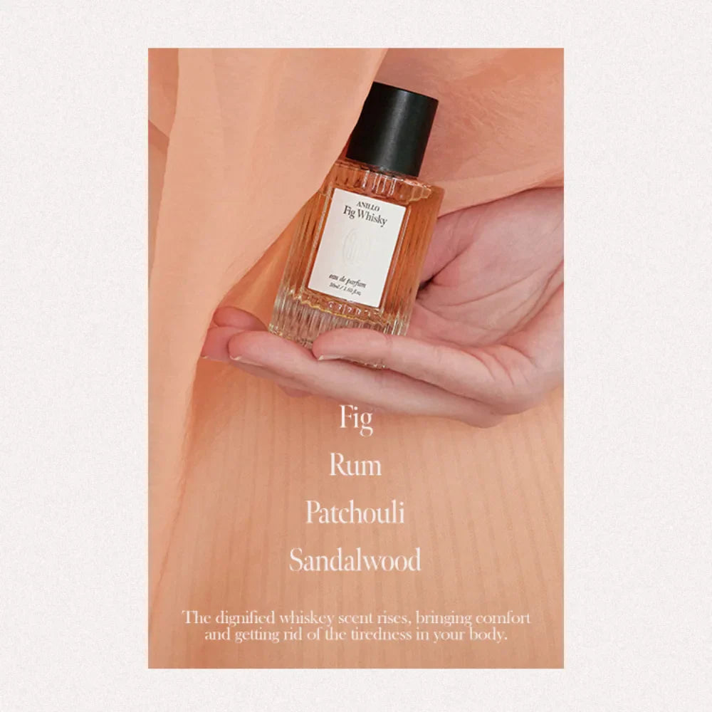 anillO’s Fig Whisky Eau De Parfum opens with ripe fig and smoky rum, deepening into woods and amber for a fragrance that feels bold yet comforting